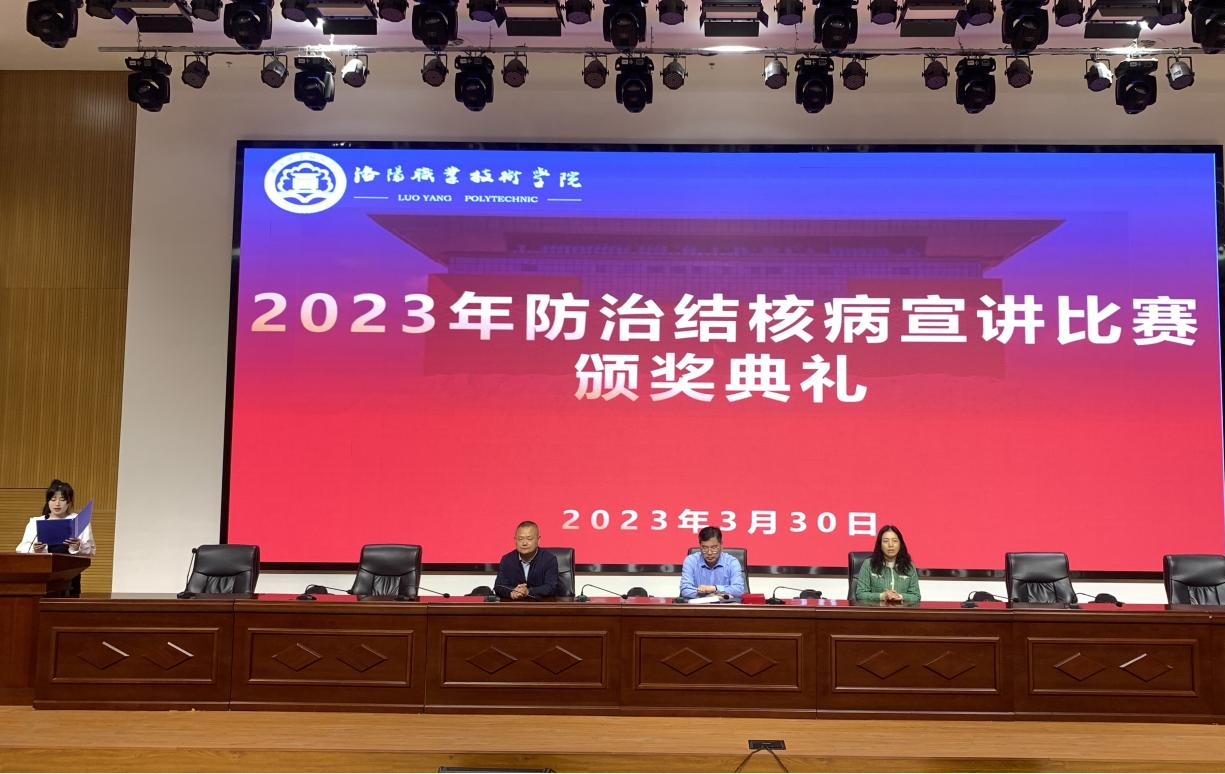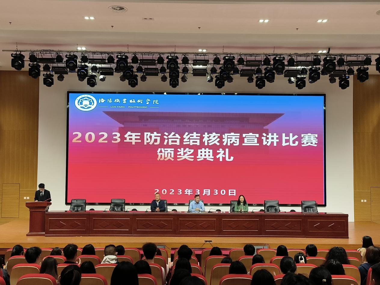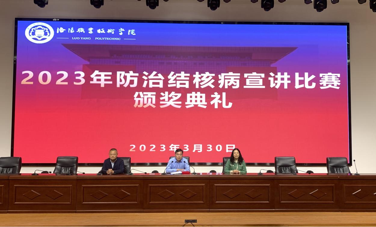 3月30日下午,校医院主办,护理与康养学院协办的2023年防治结核病宣讲比赛颁奖典礼在大学生活动中心一楼举行。副校长张志友、校医院院长尚艳芳,副院长王作伟,出席本次颁奖典礼。