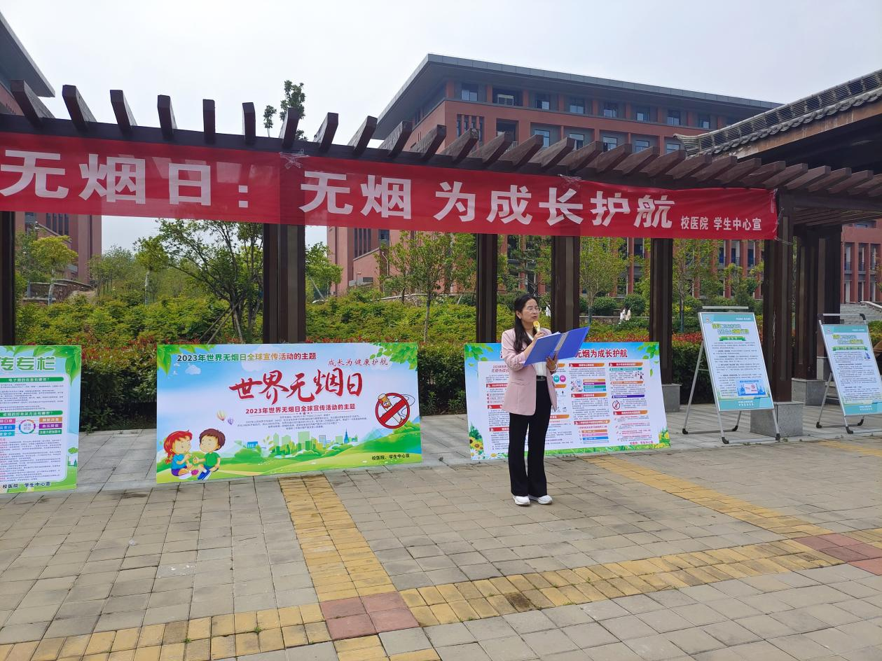 为贯彻落实《健康中国行动(2019-2030年)》控烟行动有关要求,深入开展控烟宣传教育,减少和消除烟草对全校师生的危害,积极构建青少年控烟防护网,全面营造校园无烟环境,5月31日第36个世界无烟日当天,校医院在伊滨校区组织开展了“无烟,为成长护航”的主题宣传宣誓活动。学生中心主任李少沛,校医院院长马玲娟,校医院全体人员及二级学院学生共计300余人参加了活动。