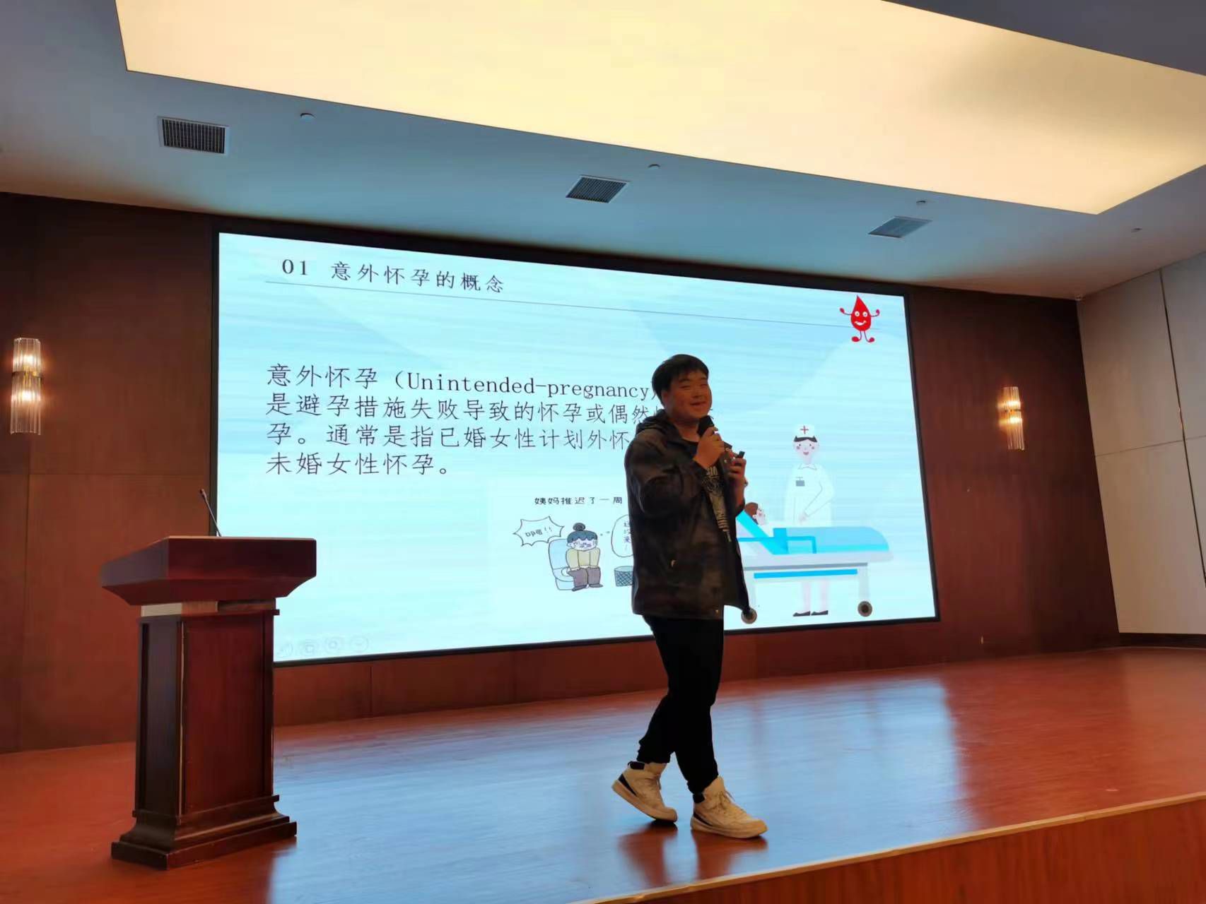 我校学生王悦俨同学积极参与同伴教育,并试讲了如何“预防意外怀孕”。