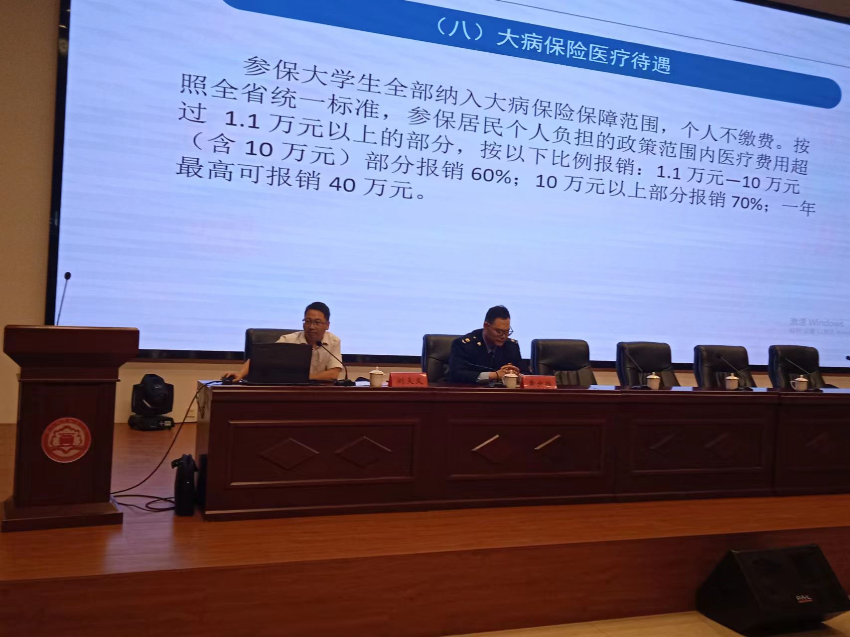 会议邀请伊滨区卫健医保局科长刘天义及税务局社保非税科科长黄笑扬等专业人员对大学生医保政策及参保缴费流程进行详细解读。刘天义科长就大学生医保政策出台背景、大学生医保与城乡居民医保的区别、大学生医保的参保登记流程、门诊和住院的起付标准和报销比例、大病保险医疗待遇、异地就医政策、大学生医保优势等进行了详细而生动的讲述,参会老师及广大学生干部对大学生医保政策有了更加清晰的认识。