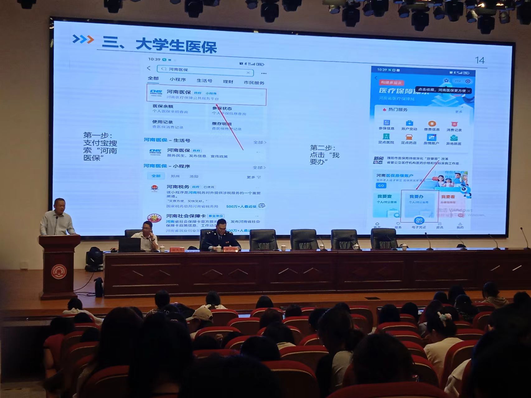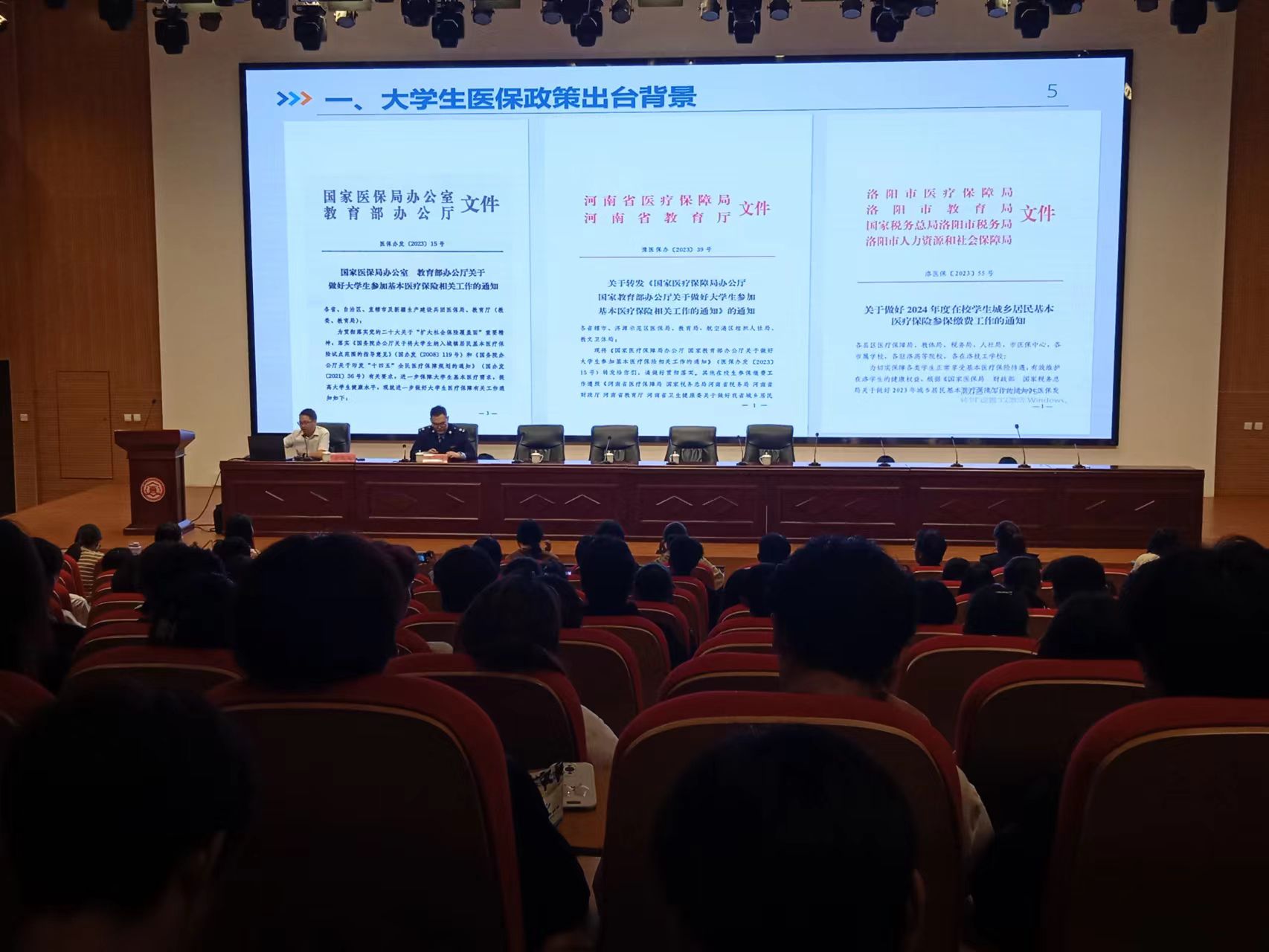 为进一步做好大学生群体医保政策解答服务,提升大学生群体参保率,保障在校学生的医保待遇。11月2日下午2点30分,校医院组织召开了“大学生医保政策宣讲会”,会议在大学生活动中心一楼报告厅举行,由校医院副院长王作伟主持,各二级学院医保专员及伊滨校区各班级班长约340人参加。