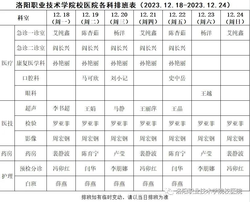 (值班日期详见排班表)