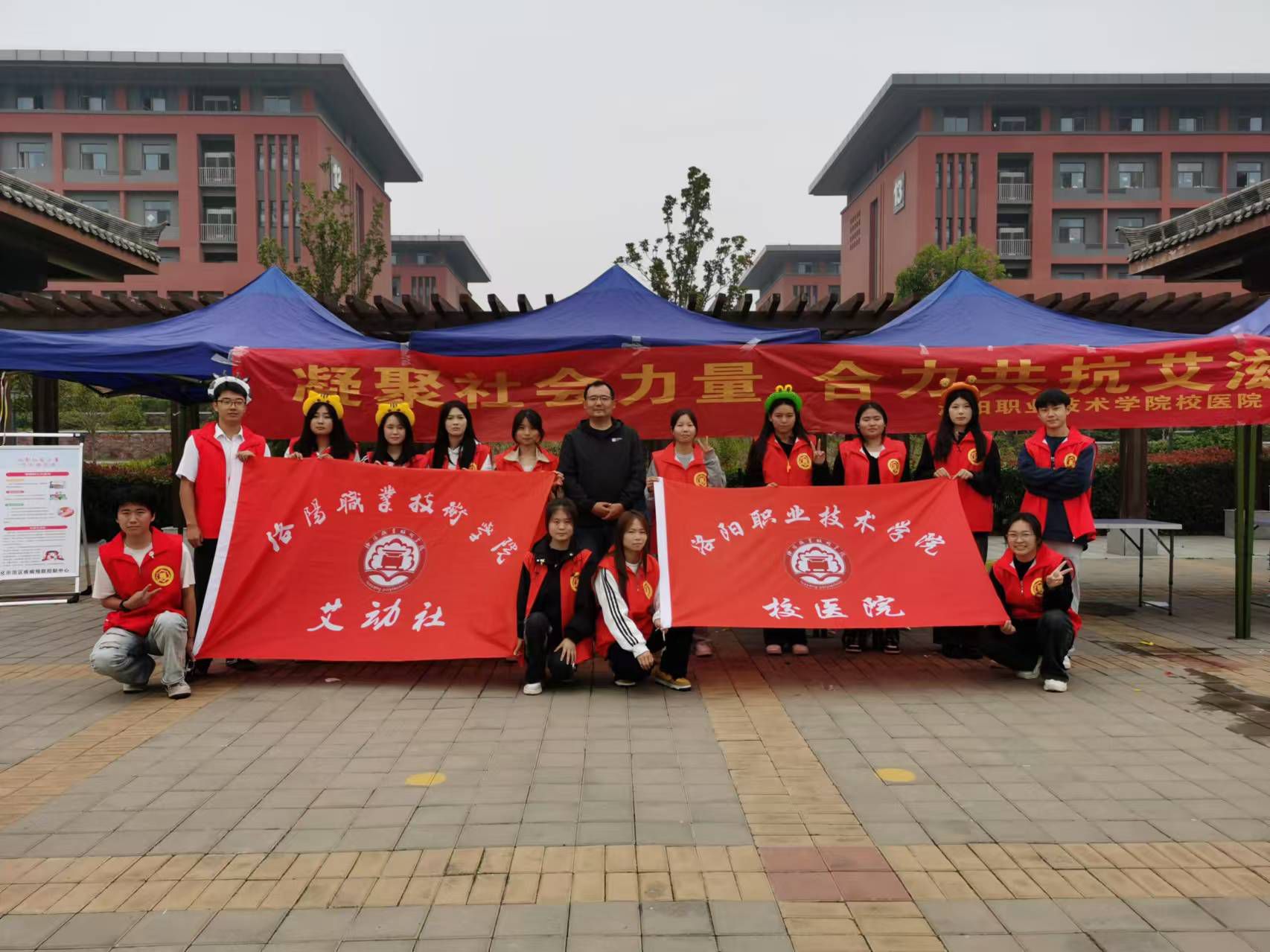为了增强全校师生对艾滋病的防治意识,提高全校师生的健康素养和健康意识,10月12日上午,校医院带领艾动社同学于伊滨校区劳动广场,开展了洛阳职业技术学院预防艾滋病主题宣传活动。