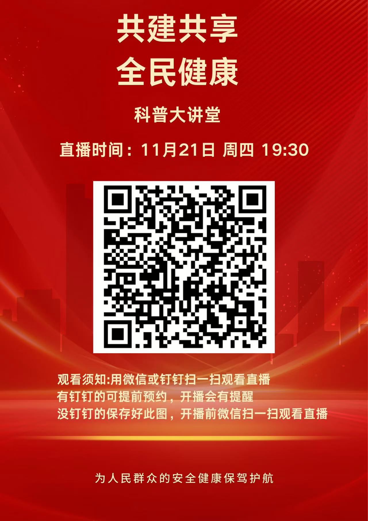 秋冬季是传染病和慢性病的高发期,为贯彻落实《健康河南行动(2023-2025年)》有关要求,深入推进卫生急救和疾病预防,进一步传播和普及健康知识,特邀省级健康科普专家定于11月21日19:30开展一期线上科普。请各部门负责人通知全校职工准时上线学习。就有关事宜通知如下: