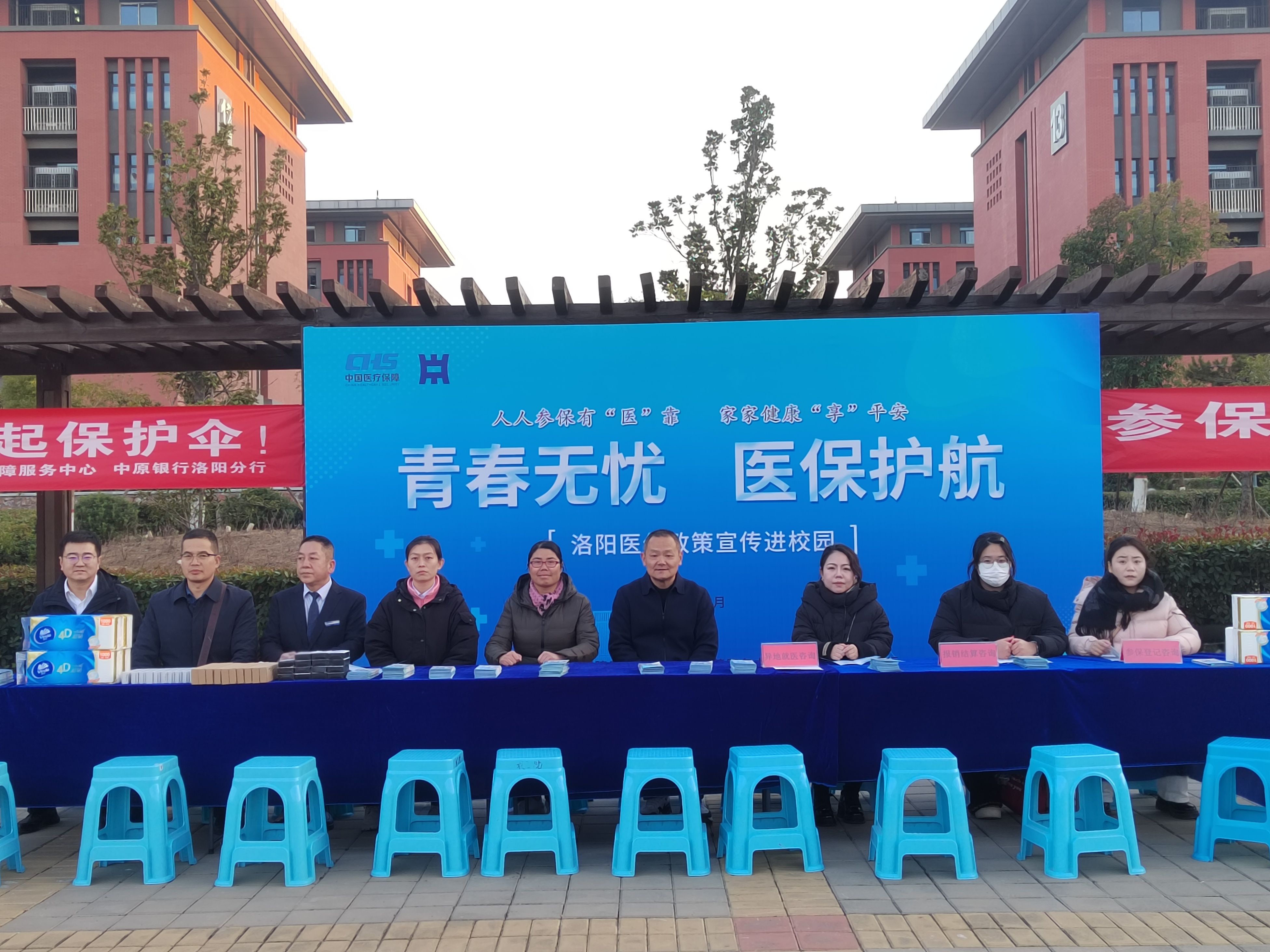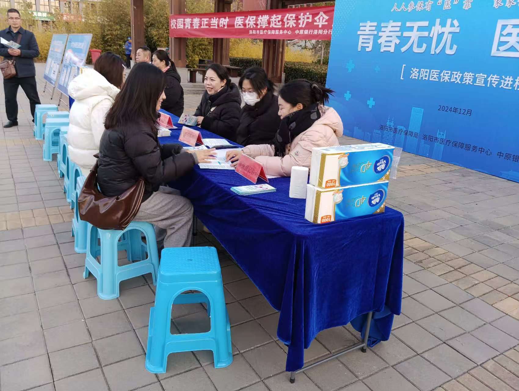 为切实做好我校大学生参保工作,提升我校学生对大学生医保政策的知晓率,营造积极参保的氛围。2024年12月16日至20日,洛阳市及伊滨区医保部门联合税务、银行、人寿公司等部门进驻我校,与我校共同开展“青春无忧 医保护航”为主题的医保政策进校园宣传周活动,与大学生面对面话医保,确保医保待遇“应享尽享”。