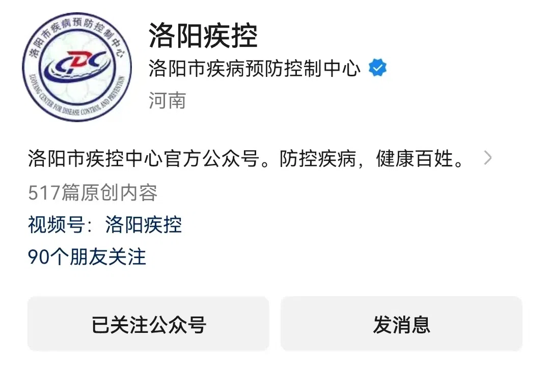 微信公众号“洛阳疾控”,搜索微信公众号“洛阳疾控”