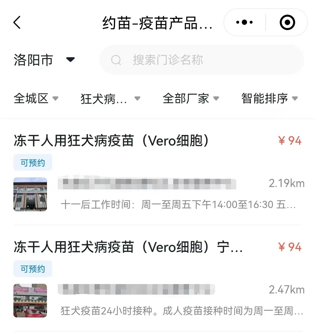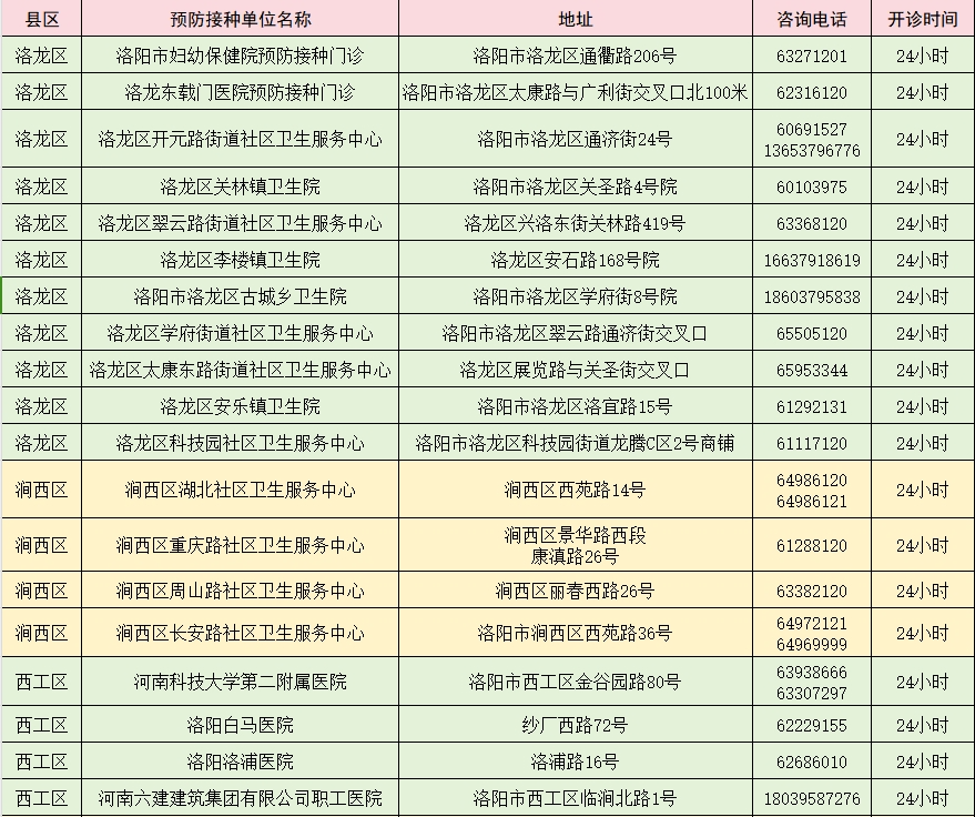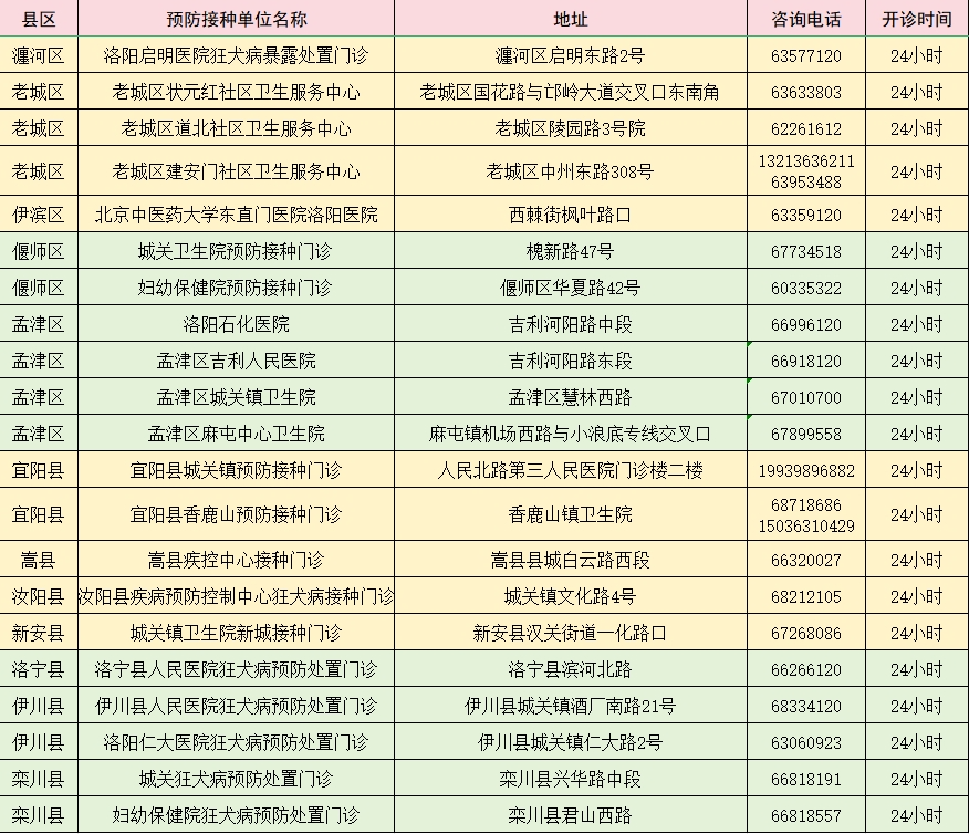 洛阳市24小时狂犬病暴露预防处置门诊名单