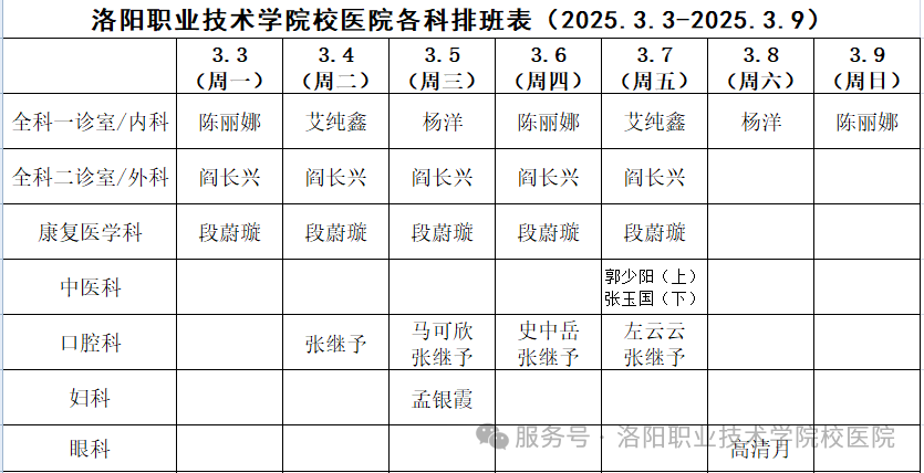 (值班日期详见排班表)