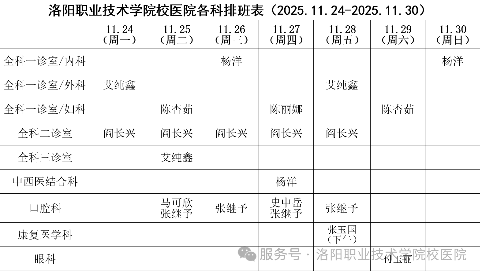 (值班日期详见排班表)