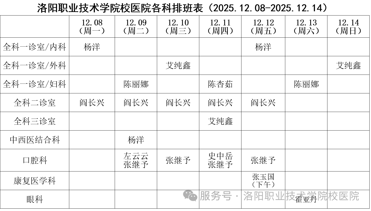 (值班日期详见排班表)
